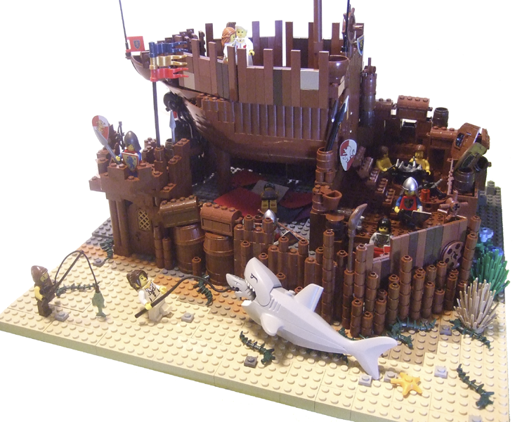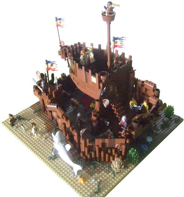 The fine folks over at Classic-Castle.com are having their annual Lego building contests. This is my entry for the “Wooden Castle” category. I thought a shipwrecked group of knights and maidens would be a fun thing to build. If you like Lego and castles, you should go check out the other awesome entries. Also, click to enlarge.